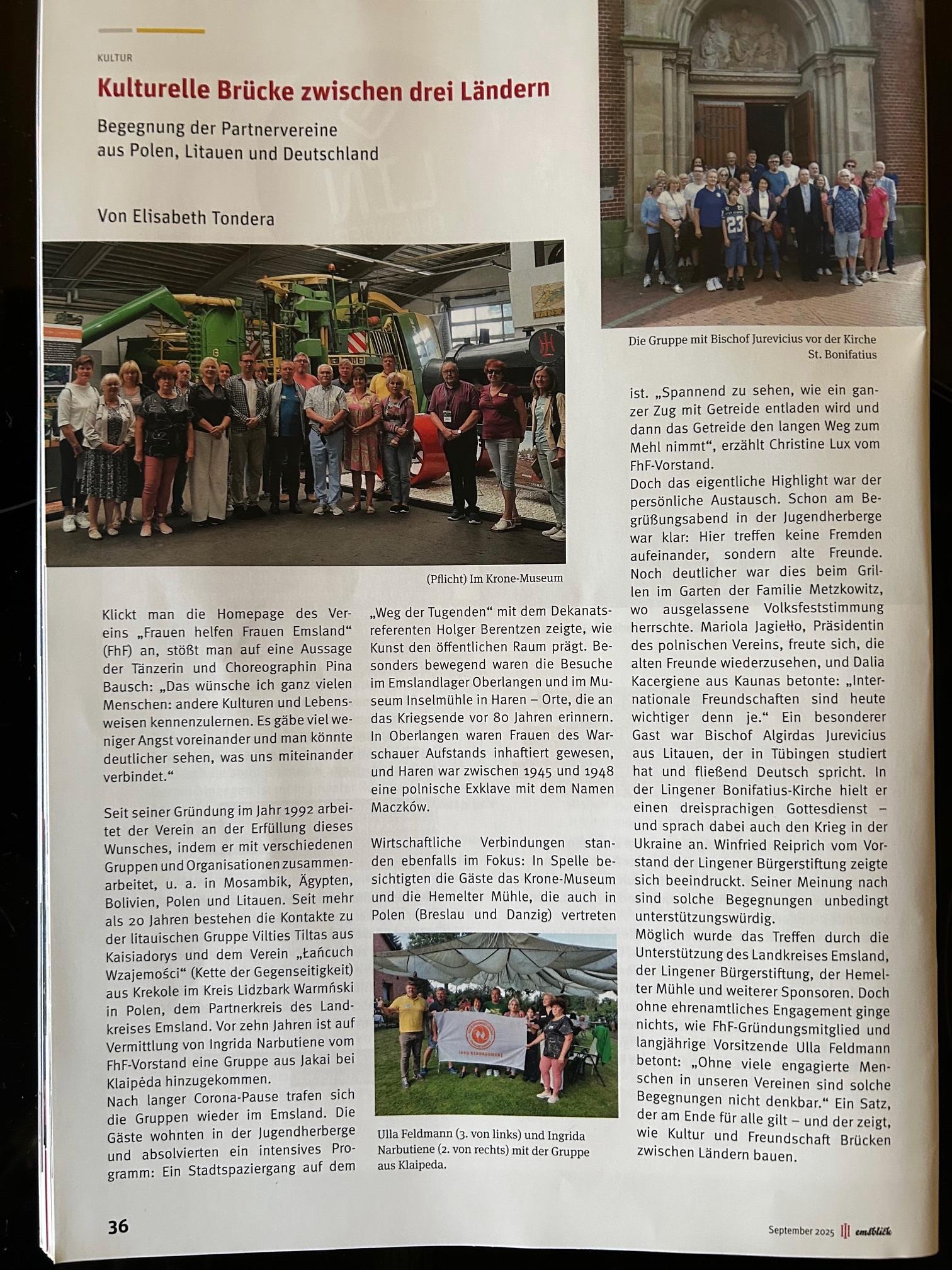 Link zum Presseartikel aus Jakai-Kleipeda-Litauen - Begegnung im August 2019 im Emsland